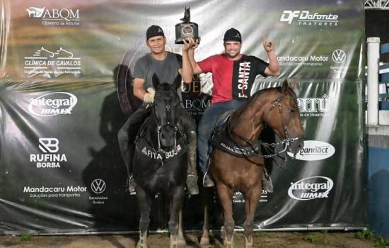 O grande destaque da competição foi para uma dupla de vaqueiros pernambucanos que disputou o “Valeu Boi” na categoria Aberta-Livre. FITA SUS INT (NAPOLEAN SUS x ABSOLUT WILD QR) com o puxador Adjailson André de Paiva e VITORIA EASY (GUERREIRO MYKE x KRIS PEPBAR HPAM) com o esteira Geraldo José de Moraes Guerra Neto garantiram o primeiro lugar no pódio e levaram o prêmio de R$ 14 mil.