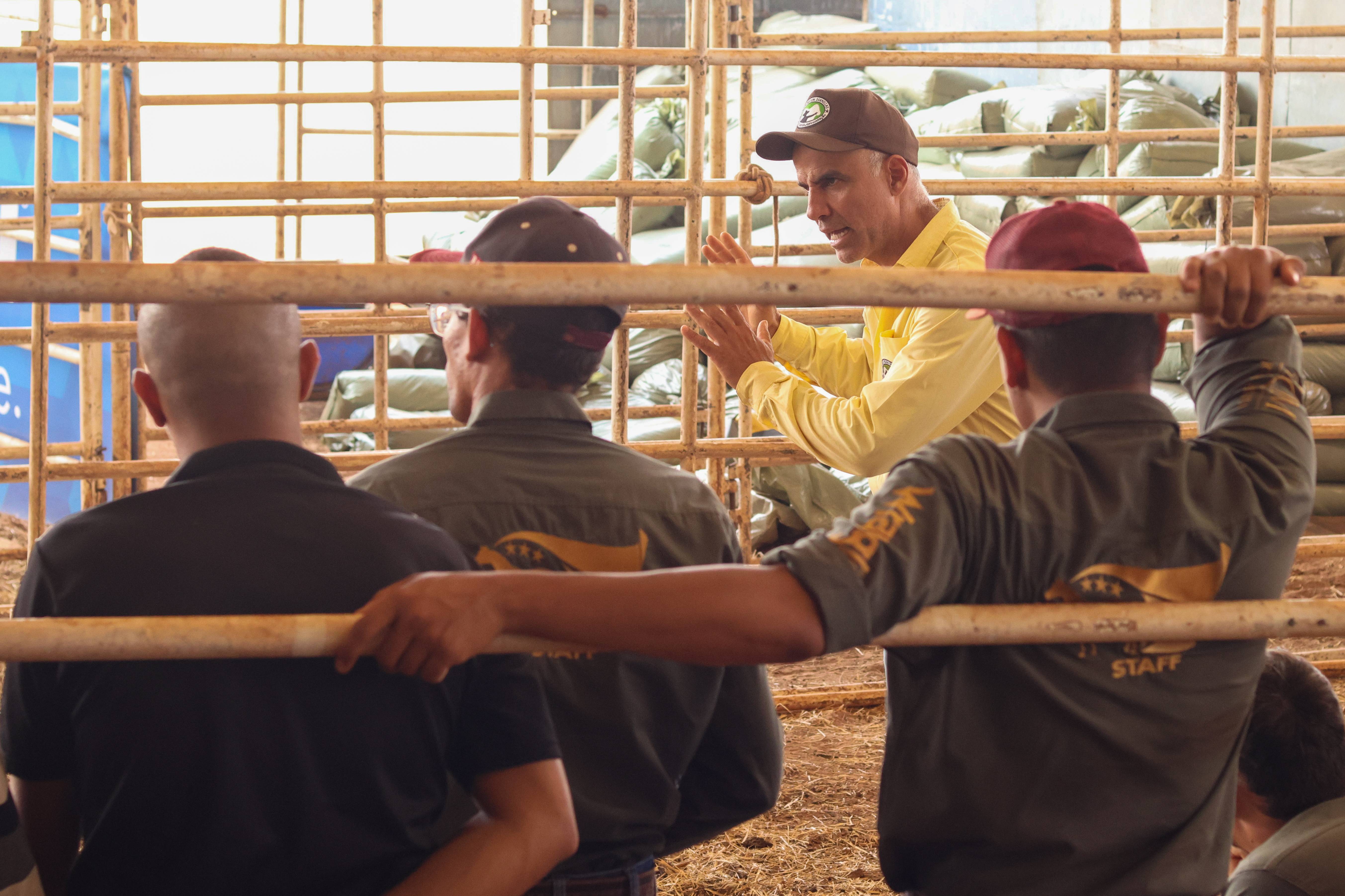 Na terça-feira (08), foi realizado um treinamento com a equipe de manejo, que é responsável pelo trabalho com os bovinos no evento. Ministrado pelo especialista em doma e manejo de bovinos, Nilson Dornellas de Oliveira, o curso contribuiu na preparação da equipe para o trabalho durante o evento.