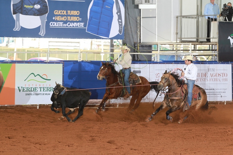 Rafael Correa Paoliello, conhecido entre os laçadores como “Chifrinho”, aumentou ainda mais sua coleção de fivelas de campeão, sendo o destaque da modalidade de Laço Cabeça. Montando Shinning Beaver MA (Steps Little Spark x Bearverla – Beaver San Bagder), na Aberta Sênior, jogou uma corda de 225, e levou o título. O campeão é de criação e propriedade de Marcello Grós.