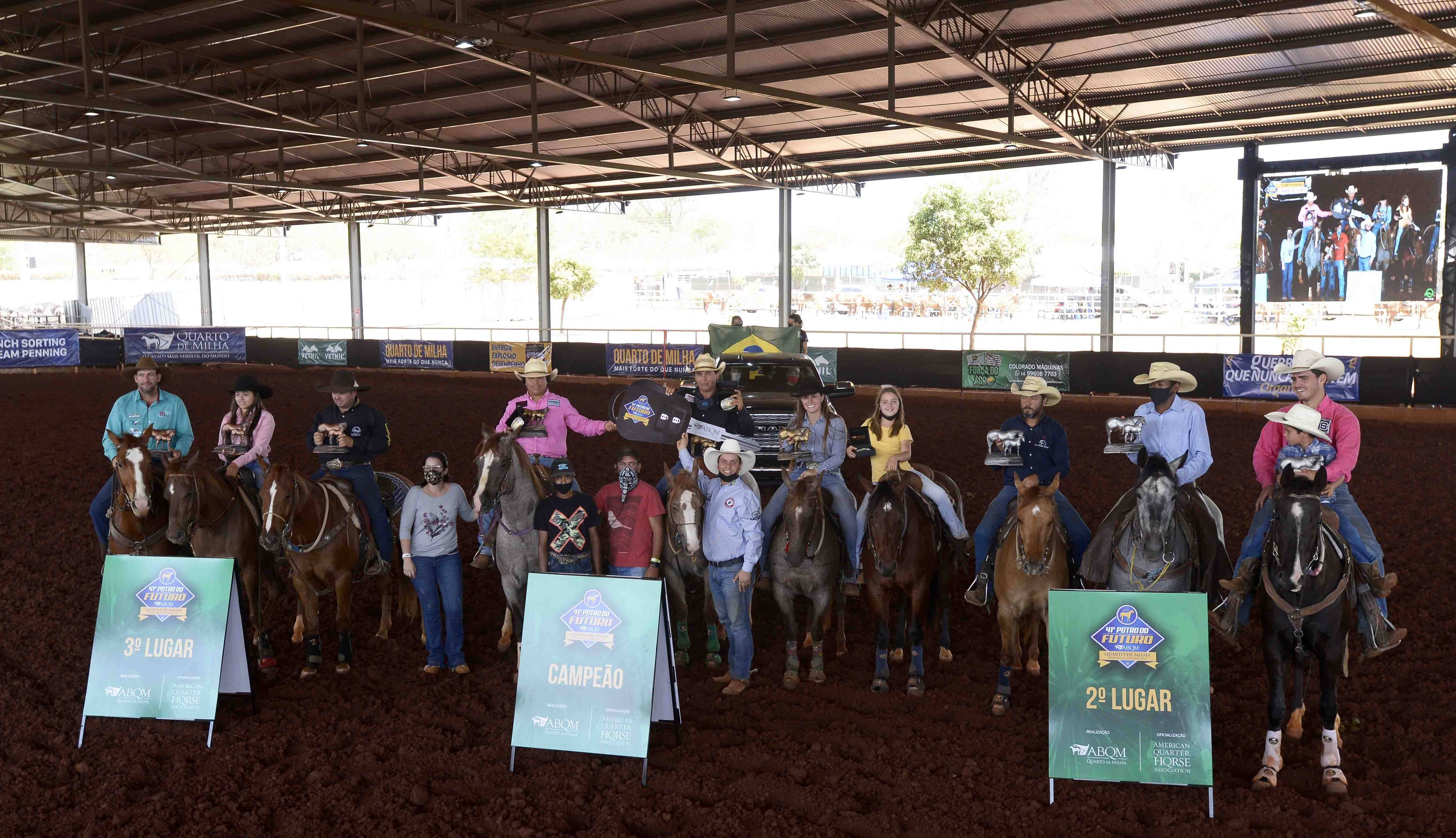 O trio Cavani Duehickey (Son Ofa Jay x Myrene Duehickey FH), com Otávio Boldrin Tristão, Smart Laredo Lena (Laredo Blue x Smart Love), com Fábio Pimenta Barbosa, e Apolo Gun Boonsmal (Merada's Playboy x Janauba Max), com Saulo Sousa Moscardini, foi o grande campeão na categoria Amador 19 anos ou mais AQHA, com o tempo de 53s971.